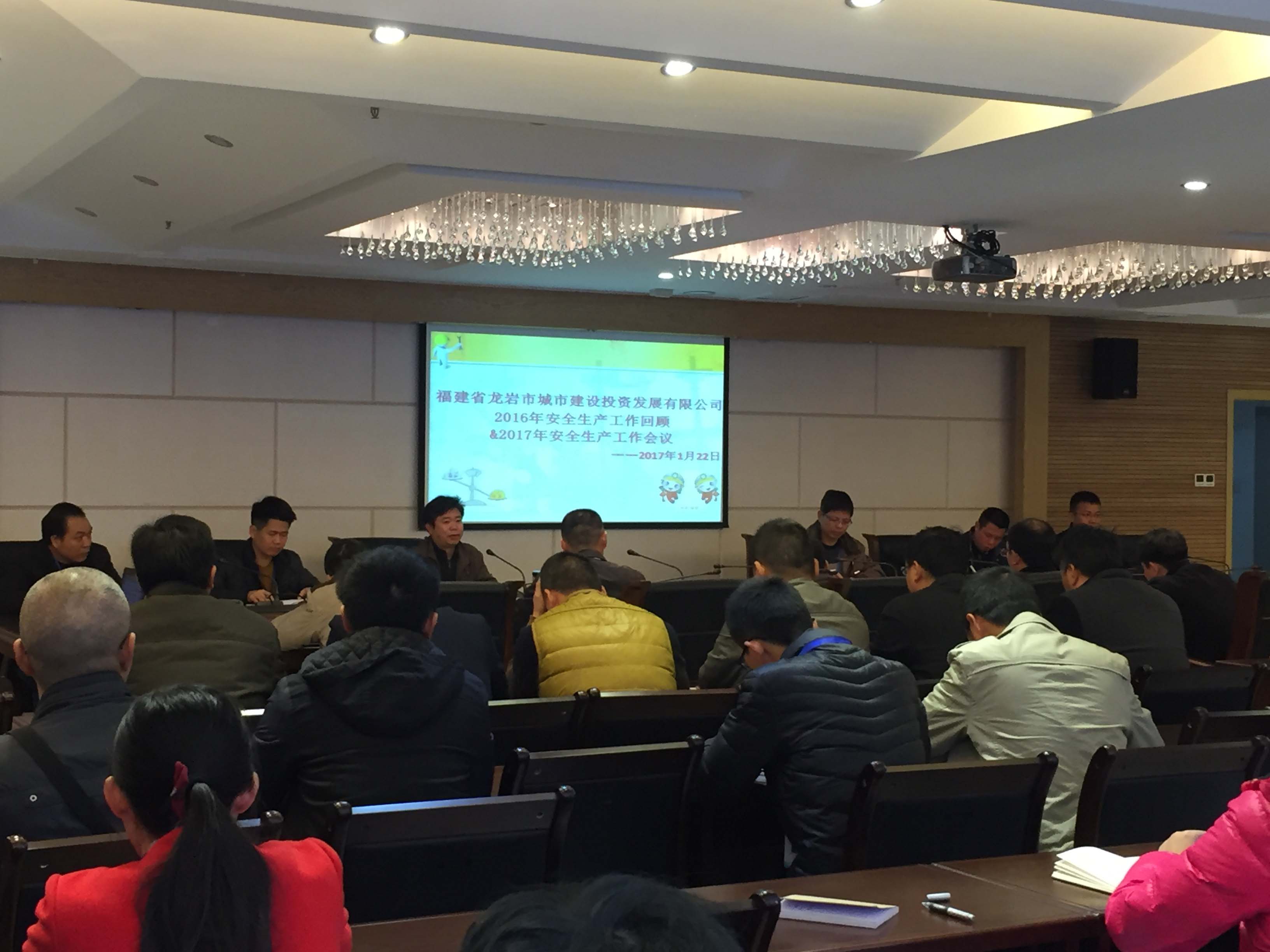 1月22日,徐旺興總經理在市住建局四樓會議室主持召開2016年安全生產工作回顧及2017年度安全生產工作會議,公司全體員工參加了會議。會上,徐總經理簡要回顧了我司2016年安全生產工作情況,通報了2016年公司安全生產工作目標考評情況,分析了當前安全生產工作的得失,并就2017年度安全生產工作進行部署,制定了新一年度的安全生產工作計劃。會議強調公司領導必須嚴格落實“黨政同”和“一崗雙責”要求,明確提出2017年安全生產工作重點是加大力度推進安全生產標準化工作,保持安全生產工作形勢穩定發展。               質安科    陳彩霞)