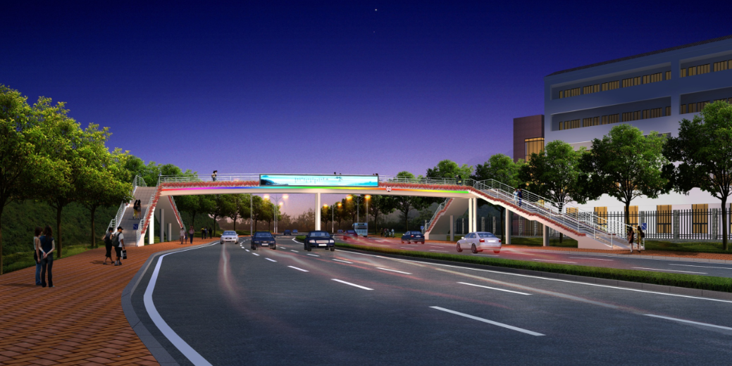 水韻華都人行天橋位于龍騰路水韻華都南側,橫跨龍騰中路。橋長34.4米,寬3.6米,下部結構采用鉆孔灌注樁和擴大基礎,上部結構采用鋼結構,項目總投資約400萬元。項目于2016年4月開工,8月底竣工。項目建成后,可有效保障該片區行人過街的安全,提高人們出行效率。