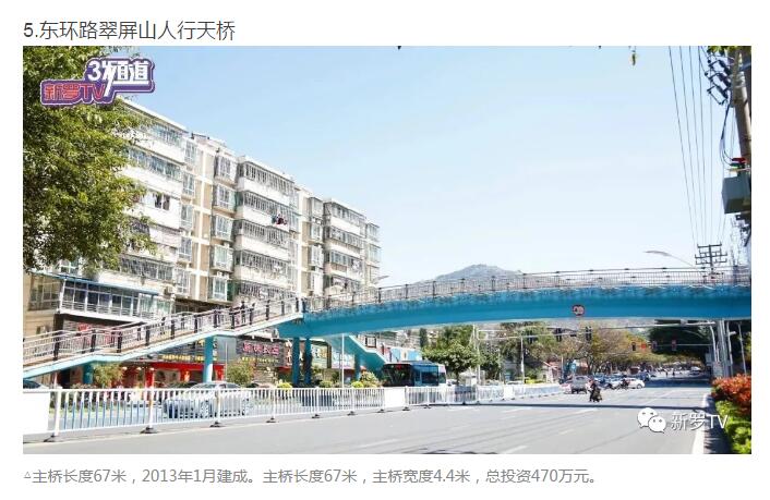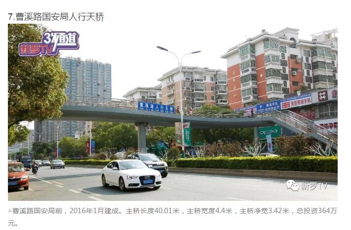 年來(lái),市委、市政府加大市政基礎(chǔ)設(shè)施投入,大力推進(jìn)人行天橋建設(shè)。截止2017年底中心城市共興建20余座人行天橋。