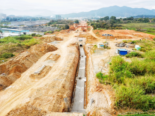 2017年9月開工。目前,下穿車型通道U型槽、箱型通道、排洪溝主體已完成管廊主體結構已完成45米