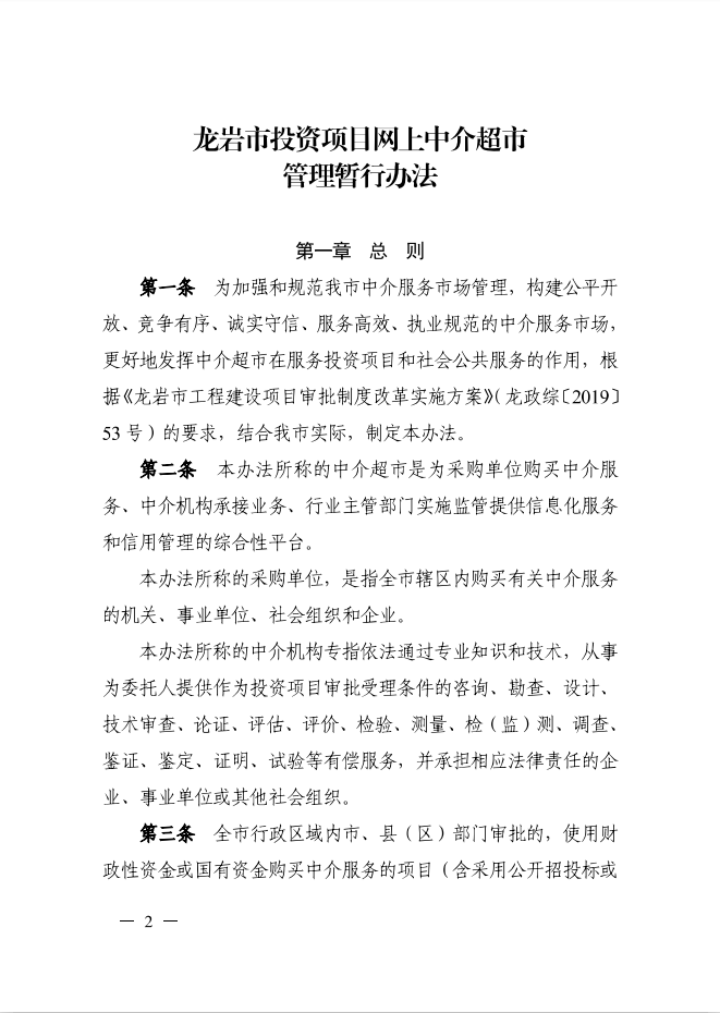龍巖市人民政府辦公室關于印發龍巖市投資項目網上中介超市管理暫行辦法的通知(龍政辦[2019]111號)